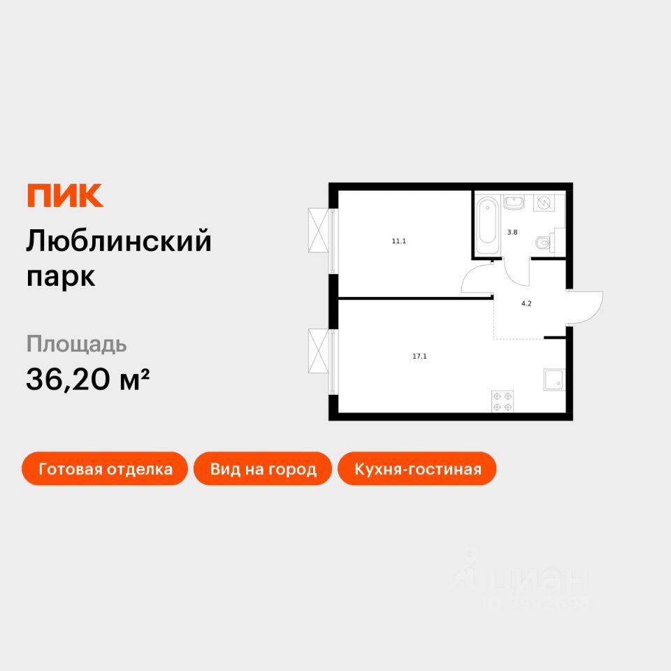 Продаётся 1-комн. квартира площадью 36,2 кв.м на 20 этаже 33 этажного дома (Корпус 14.1, Секция 1) проекта ПИК Люблинский парк. Светлый просторный подъезд на уровне земли, функциональная планировка, большие окна, c отделкой.