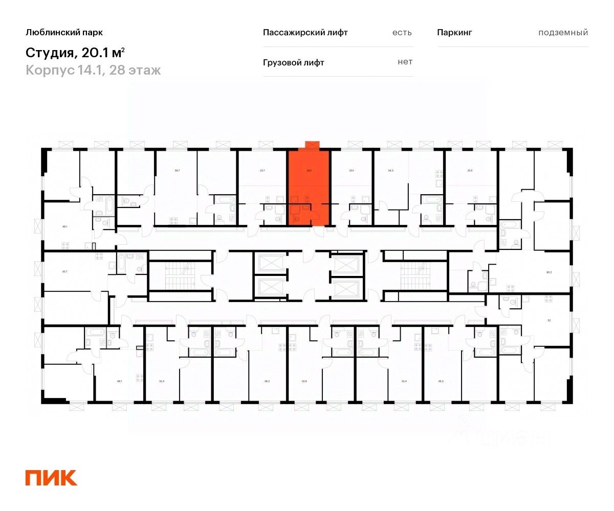 Продаётся квартира-студия площадью 20,1 кв.м на 28 этаже 33 этажного дома (Корпус 14.1, Секция 1) проекта ПИК Люблинский парк. Светлый просторный подъезд на уровне земли, функциональная планировка, большие окна, c отделкой.