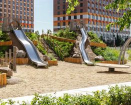 В проекте 54 жилых корпуса, три школы, семь детских садов, поликлиника. В районе есть все условия для комфортной жизни: торговые центры, школы, детские сады, поликлиники и спортивные центры. Рядом находятся усадьба Люблино, скверы и парки. Различные магазины, кафе и другие сервисы откроются на первых этажах, а на подземных будут паркинги с удобной навигацией. В зелёных дворах без автомобилей мы построим детские площадки и места для отдыха. А ещё "Люблинский парк" стал третьим проектом ПИК с большой игровой площадкой ПлейХаб, которая уже открылась между 1-м и 2-м блоками на безопасном расстоянии от дороги. Новое детское пространство "Остров" воплощает идею бесконечной игры. Ландшафт площадки — это ещё и игровой элемент, который помогает детям придумывать множество самых разнообразных игр. Здесь интересно детям разного возраста — от малышей до подростков.