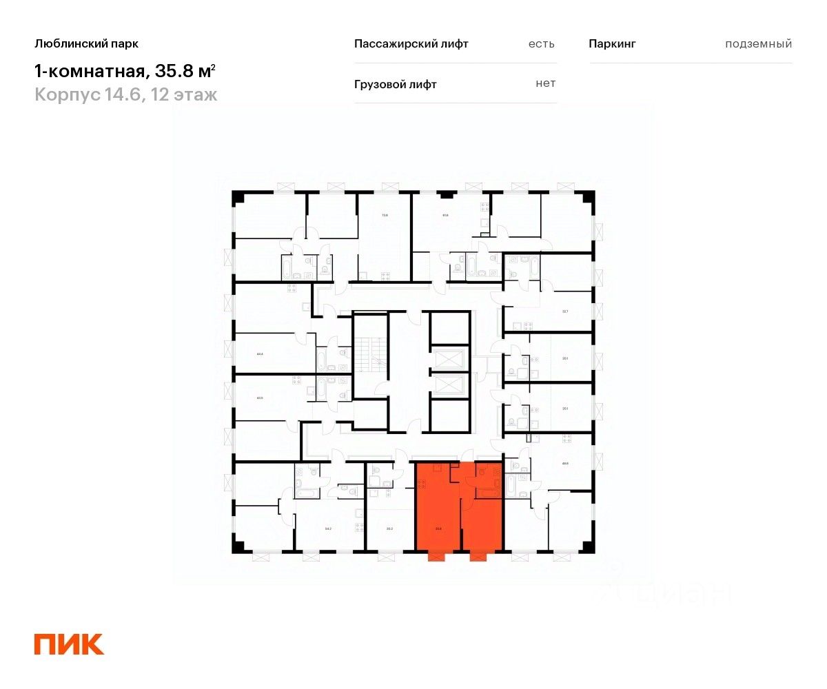 Продаётся 1-комн. квартира площадью 35,8 кв.м на 12 этаже 17 этажного дома (Корпус 14.6, Секция 4) проекта ПИК Люблинский парк. Светлый просторный подъезд на уровне земли, функциональная планировка, большие окна, c отделкой.
