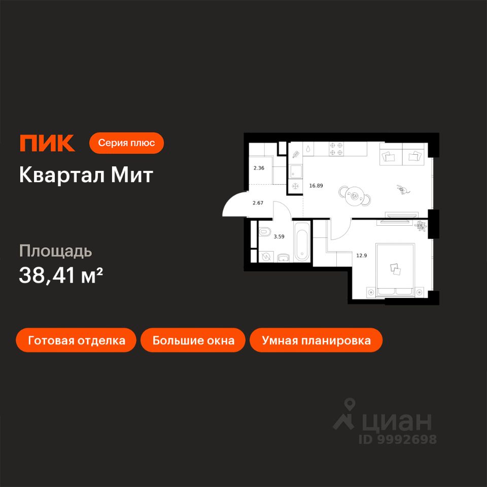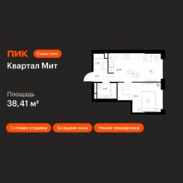 Новостройка! Продается 1-комн. кв-ра площадью 38,41 кв.м, (Корпус 3.4, Секция 4) 2 этаж 32-этажного дома в Квартал Мит от ПИК. "Квартал Мит" строится в экологически чистом районе Митино, где по соседству расположен большой лесопарк, а с двух сторон протекают реки Сходня и Журавка. Для семей с детьми здесь появится школа и два детских сада.