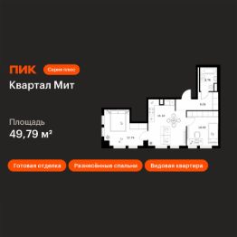 Продаётся 2-комн. квартира площадью 49,79 кв.м на 19 этаже 32 этажного дома (Корпус 3.4, Секция 4) проекта ПИК Квартал Мит. Светлый просторный подъезд на уровне земли, функциональная планировка, большие окна, c отделкой.