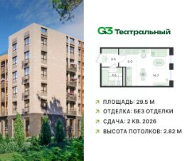 В современном квартале бизнес-класса G3 Театральный продаётся квартира-студия, общей площадью 29.5 кв.м, расположенная на 4 этаже (корпус 2, секция 6).