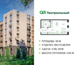 В современном квартале бизнес-класса G3 Театральный продаётся квартира-студия, общей площадью 30 кв.м, расположенная на 2 этаже (корпус 2, секция 7).