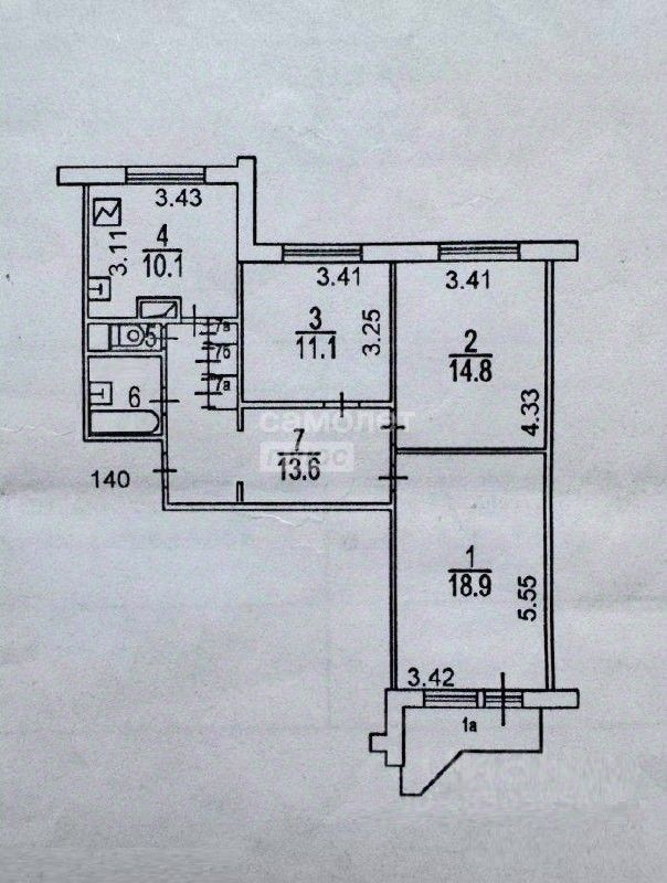 Комнаты: 3( изолированные), 18.9 кв.м., 14.8 кв.м., 11.1 кв.м.