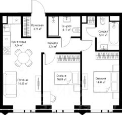 В продаже квартира площадью 60.43 м² без отделки на 33 этаже 46 этажного дома. Квартира расположена в корпусе Leo.