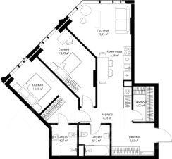 В продаже квартира площадью 77.16 м² без отделки на 39 этаже 46 этажного дома. Квартира расположена в корпусе Leo.