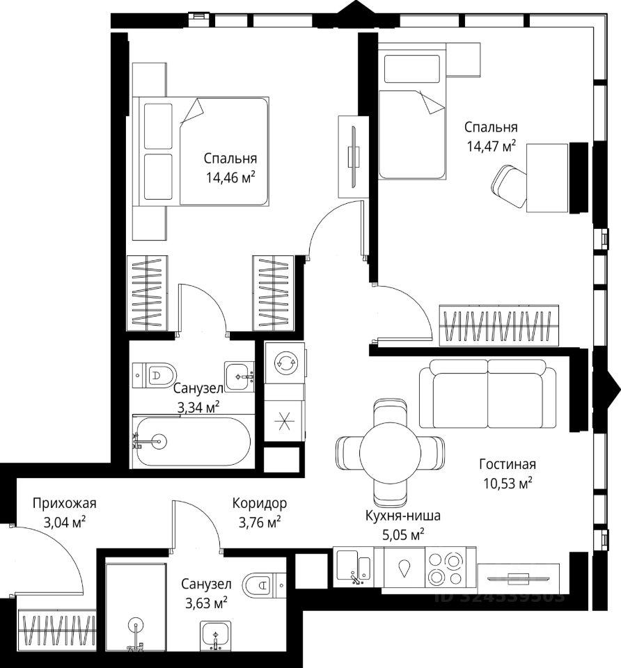 В продаже квартира площадью 58.28 м² без отделки на 39 этаже 46 этажного дома. Квартира расположена в корпусе Leo.
