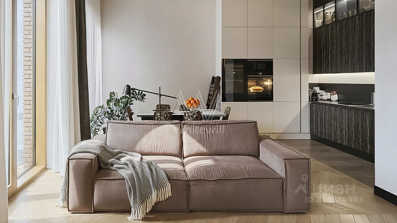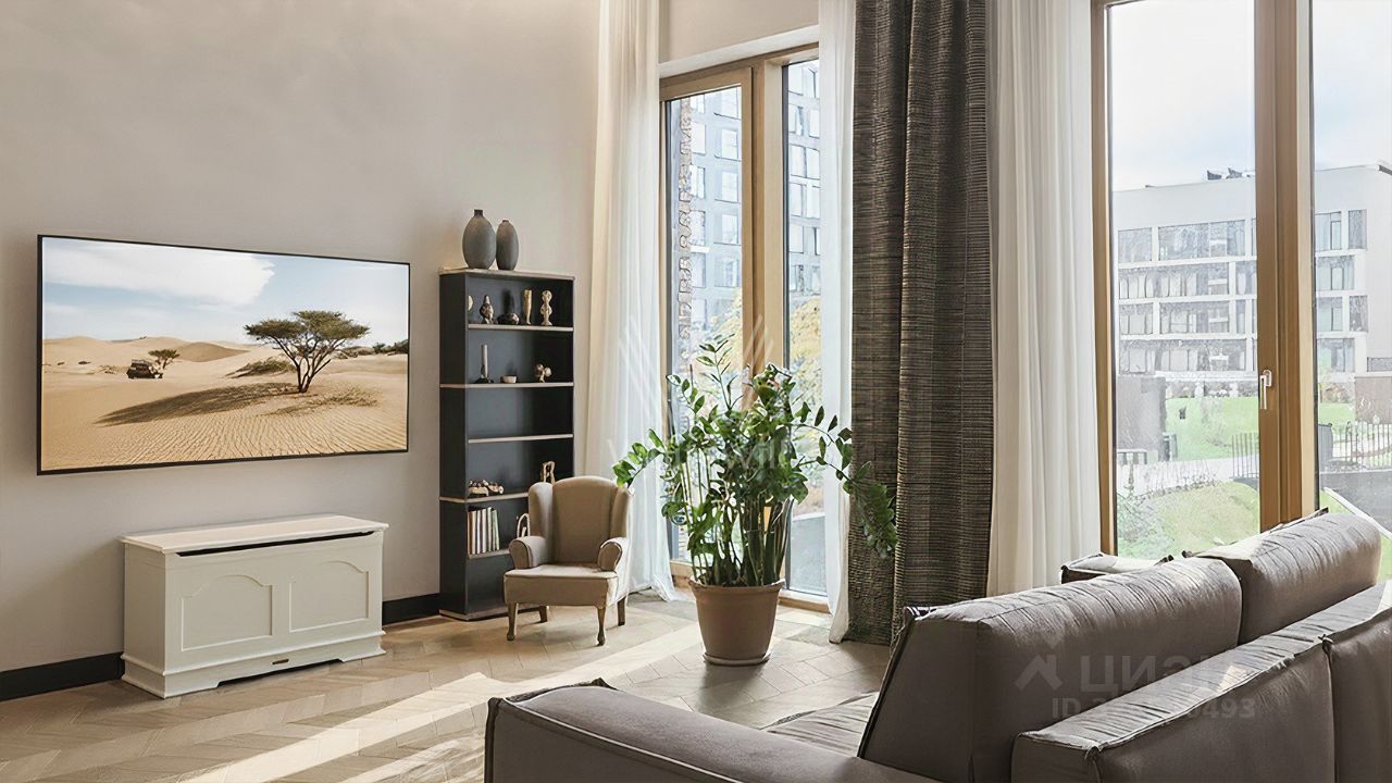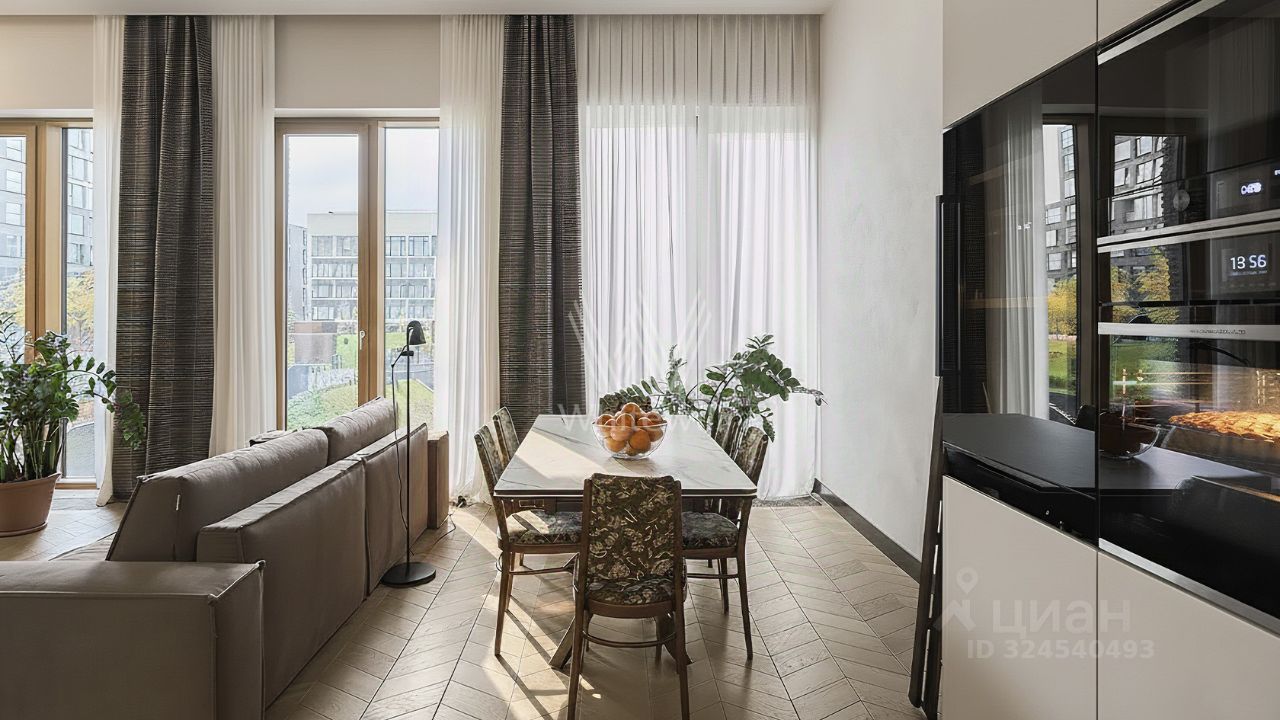 Интерьер оформлен в современном стиле в спокойных оттенках, создающих уютную атмосферу. Для вашего комфорта установлена вся необходимая мебель и техника. Благодаря точечному освещению, потолкам высотой 3,8 метра и панорамным окнам в комнатах светло и просторно.