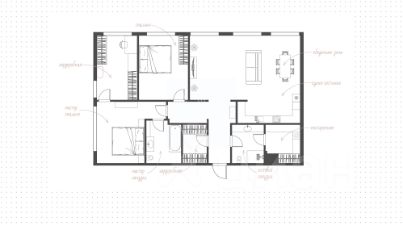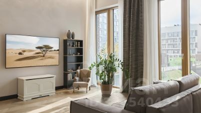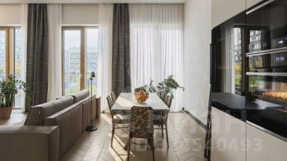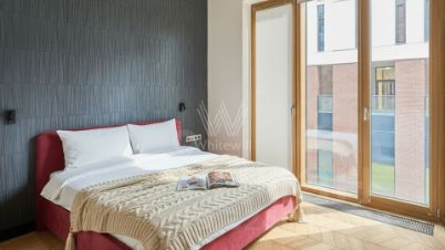 Квартира с двумя спальнями общей площадью 103 м² в комплексе клубных домов "Садовые кварталы" в Хамовниках. Квартира расположена на втором этаже с выходом на балконную галерею с видом на пруд и является единственной на этаже.