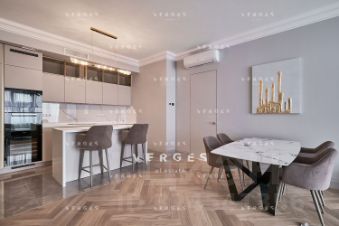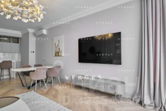 Авторский ремонт: выполнен новый ремонт премиум-класса. Квартира полностью укомплектована эксклюзивной итальянской мебелью и встроенной техникой. Полы — массив дерева и керамогранит. Идеальная планировка: кухня-гостиная, 2 спальни, 2 санузла, 2 гардеробные комнаты, постирочная комната. Большая лоджия. Никогда не сдавалась в аренду, имеет потрясающие видовые характеристики!