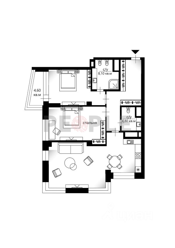 — 2 спальни