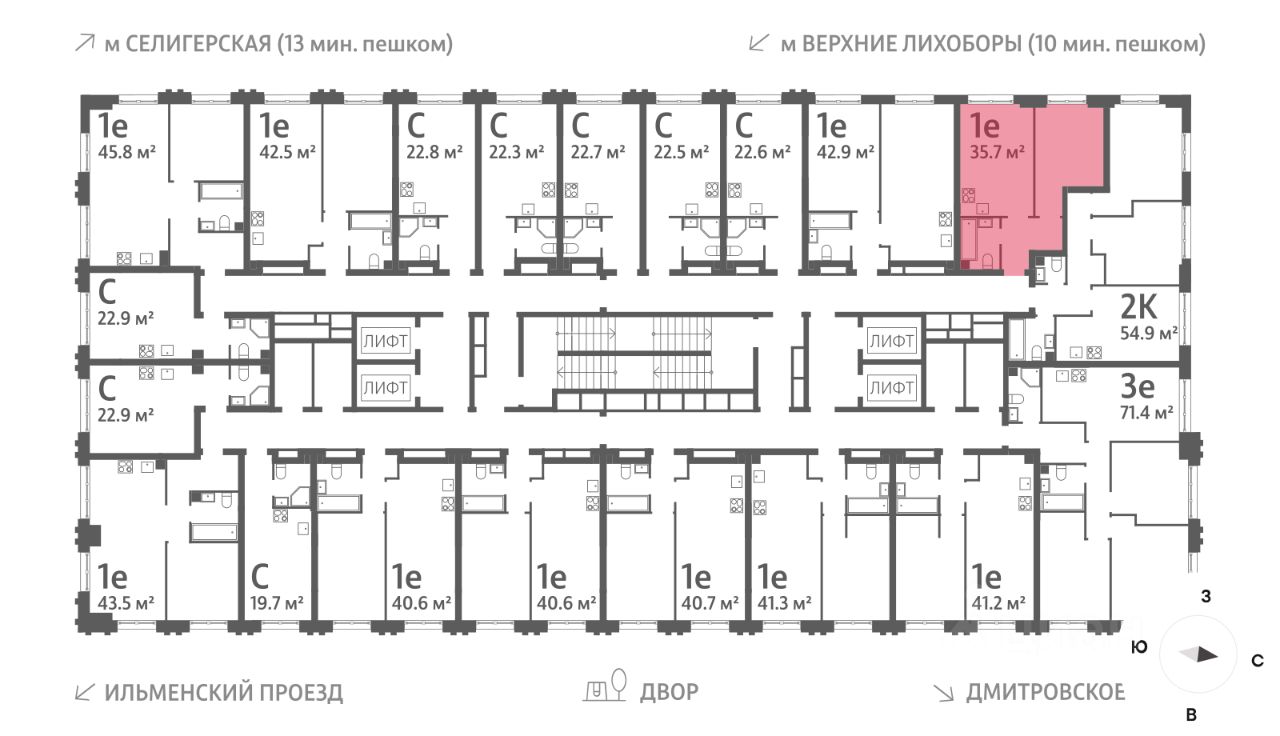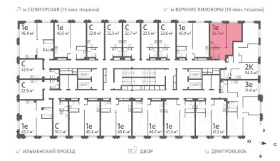 Продается 1-комнатная квартира общей площадью 35.7 кв. метров на 10 этаже жилого комплекса Дмитровское небо. Комплекс возводится в Северном административном округе в районе Западное Дегунино в Ильменском проезде, в 5 минутах ходьбы от метро "Верхние Лихоборы", а автомобилисты могут за пару минут выехать на Ильменский проезд и по нему добраться до Дмитровского шоссе.