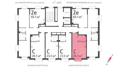 Продается квартира-студия общей площадью 26.11 кв. метров на 15 этаже жилого комплекса Дмитровское небо. Комплекс возводится в Северном административном округе в районе Западное Дегунино в Ильменском проезде, в 5 минутах ходьбы от метро "Верхние Лихоборы", а автомобилисты могут за пару минут выехать на Ильменский проезд и по нему добраться до Дмитровского шоссе.