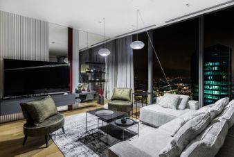 В апартаменте выполнен премиальный ремонт с использованием высококачественных материалов. Дизайнерская отделка, мебель от лучших производителей и стильные предметы интерьера создают уютную, расслабляющую атмосферу.
