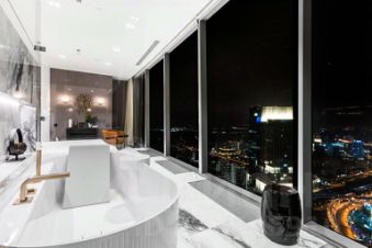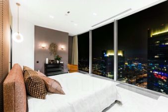 Остекление выполнено по панорамному типу, позволяя наслаждаться широкомасштабным обзором делового и исторического центра столицы.