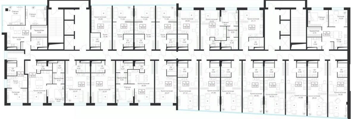 Продаются 2-комнатные апартаменты 58.87 кв.м. на 5-м этаже 20-этажного комплекса.