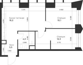 Продаётся 2-комнатная квартира в строящемся доме (Корпус 1), срок сдачи: IV-кв. 2027, общей площадью 48.3 кв.м., на 12 этаже. Многофункциональный жилой комплекс по адресу: г. Москва, вн.тер.г. муниципальный округ Текстильщики, проезд 1-Грайвороновский, з/у 2/2