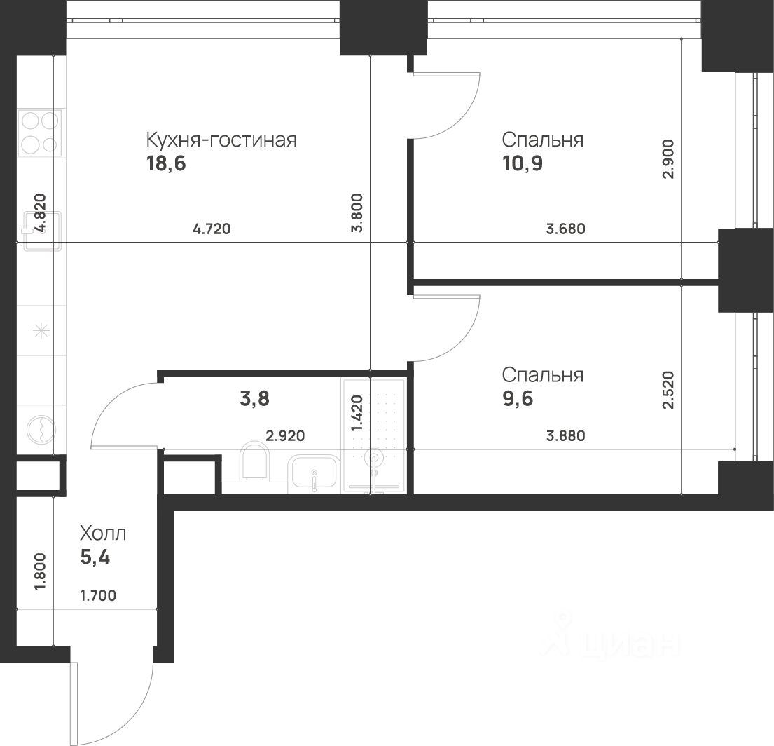 Продаётся 2-комнатная квартира в строящемся доме (Корпус 2), срок сдачи: IV-кв. 2027, общей площадью 48.3 кв.м., на 20 этаже. Многофункциональный жилой комплекс по адресу: г. Москва, вн.тер.г. муниципальный округ Текстильщики, проезд 1-Грайвороновский, з/у 2/2