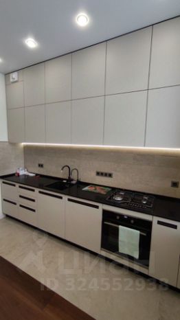 Кухня: качественно изготовленный гарнитур со столешницей из кварцевого агломерата и втроенной импортной техникой (варочная панель, духовка, посудомойка, вытяжка).