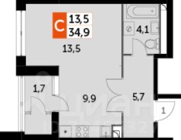 Студия 35 кв.м на 39 этаже. Квартира с прекрасным видом, с удобной планировкой. Это уступка.