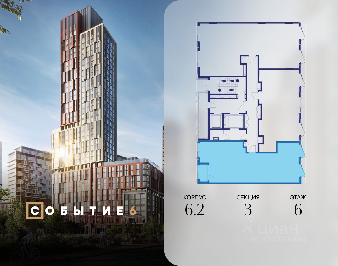 Продаётся 3-комнатная квартира от застройщика: общая площадь 80.20 м², жилая 42.80 м², кухня 20.70 м², 6-й этаж, жилой квартал "Событие-6", корпус 2 (секция 3) Срок сдачи: 1 квартал 2029 года.