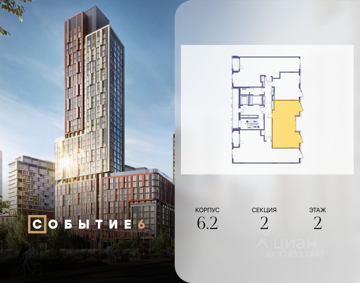 Продаётся 2-комнатная квартира от застройщика: общая площадь 59.80 м², жилая 30.10 м², кухня 18.40 м², 2-й этаж, жилой квартал "Событие-6", корпус 2 (секция 2) Срок сдачи: 1 квартал 2029 года.