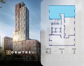 Продаётся 3-комнатная квартира от застройщика: общая площадь 104.50 м², жилая 43.70 м², кухня 29.00 м², 2-й этаж, жилой квартал "Событие-6", корпус 2 (секция 3) Срок сдачи: 1 квартал 2029 года.