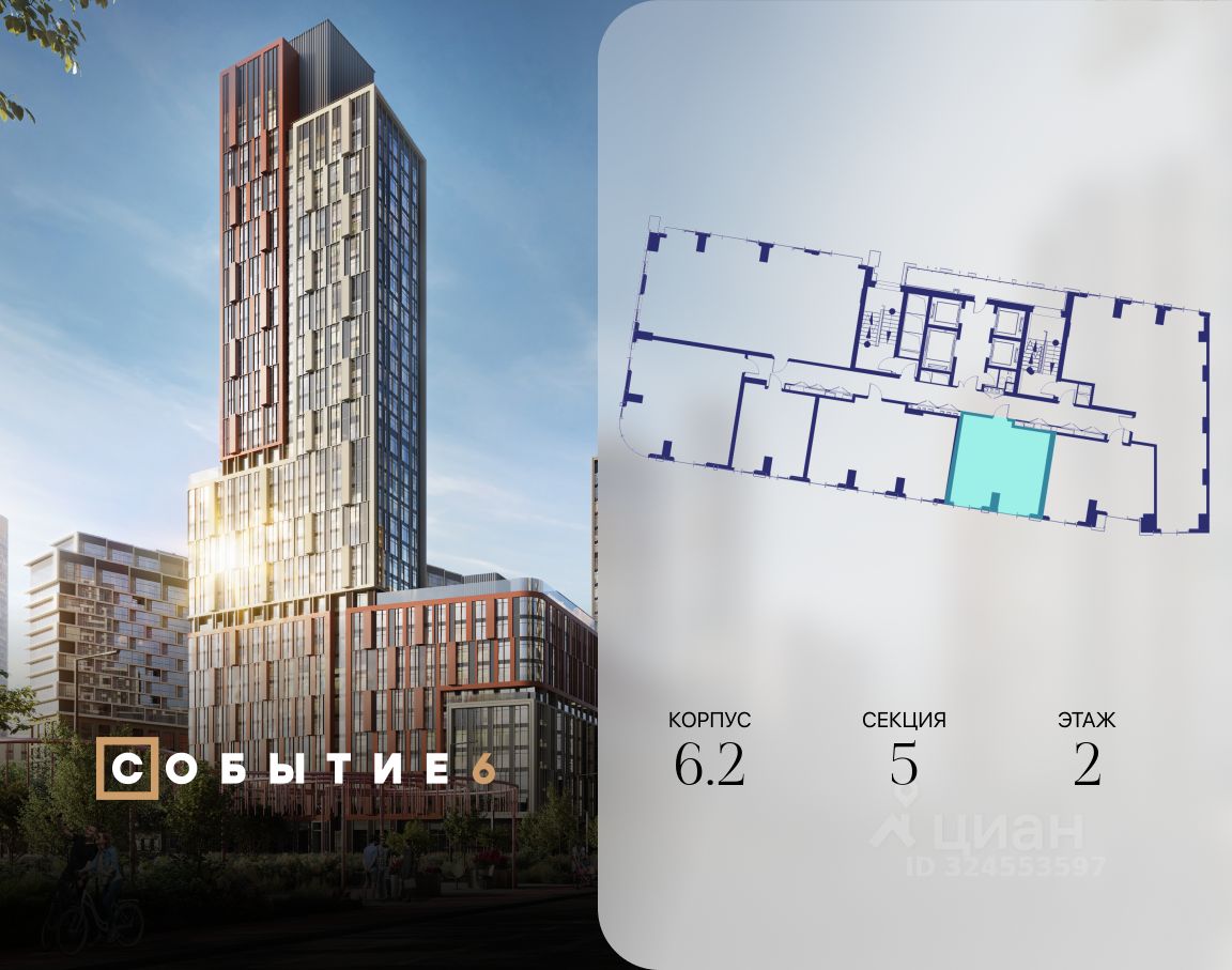 Продаётся 1-комнатная квартира от застройщика: общая площадь 41.10 м², жилая 14.60 м², кухня 19.50 м², 2-й этаж, жилой квартал "Событие-6", корпус 2 (секция 5) Срок сдачи: 1 квартал 2029 года.