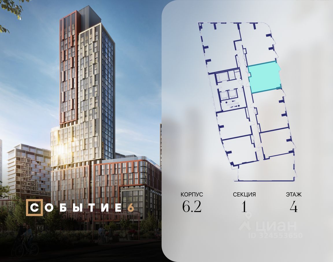 Продаётся 1-комнатная квартира от застройщика: общая площадь 48.30 м², жилая 17.30 м², кухня 23.50 м², 4-й этаж, жилой квартал "Событие-6", корпус 2 (секция 1) Срок сдачи: 1 квартал 2029 года.
