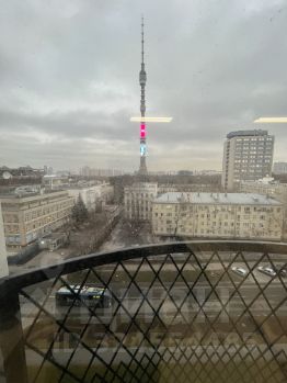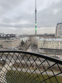 Теперь о квартире - 46 квадратных метров, 8 этаж, вид прямо на Останкинскую башню практически под углом 90 градусов (а не искоса, как в соседних объявлениях); французский балкон; идеальный этаж - не низко, так как 8 этаж в этом доме приблизительно равен по высоте 11 этажу в стандартном панельном, при этом вид поверх зданий телецентра, взору ничего не мешает, перспектива более полутора километров; но и не так высоко, чтобы выходя на французский балкон кружилась голова.