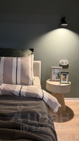 Кровать с мягким изголовьем оборудована подъемным механизмом, позволяющим с удобством использовать место под кроватью в качестве дополнительной зоны хранения, установлен кондиционер.