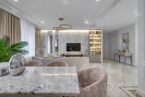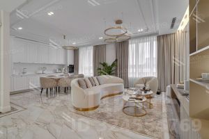 Квартира выполнена в дизайнерском стиле с использованием высококачественных отделочных материалов, таких как: