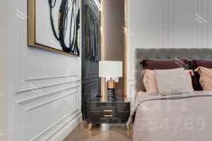 Декоративная лепнина и латунные элементы для подчеркивания классического стиля.