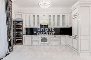 Функциональная кухня оснащена техникой Smeg, которая вдохновляет на кулинарное творчество, а винный шкаф Liebherr позволяет хранить коллекцию напитков в идеальном состоянии. Разводка под домашний кинотеатр превращает гостиную в универсальное пространство для отдыха, а шторы с электроприводом дают возможность в одно движение настроить атмосферу — от мягкого дневного света до полного затемнения.