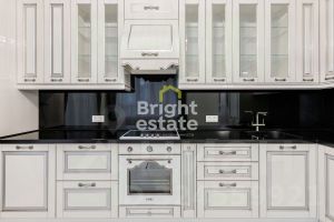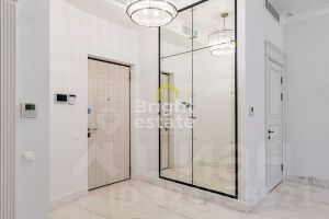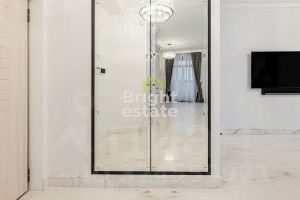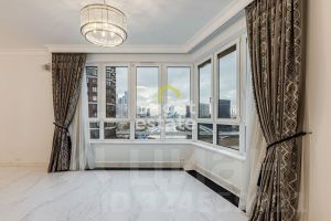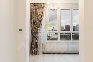 Интерьер квартиры наполнен мягким естественным светом и создаёт атмосферу спокойствия и уюта. Модульный паркет придаёт пространству благородство, а мраморные детали добавляют тонкий акцент статуса. Тёплые полы поддерживают ощущение комфорта круглый год, формируя идеальную среду для жизни в большом городе.