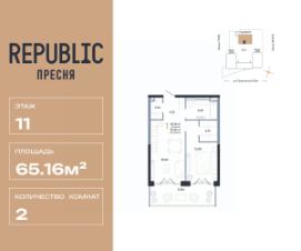 Продается 2комнатная квартира на 11 этаже от застройщика Страна Девелопмент. Площадь квартиры 65,16 кв. м.