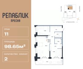 Продается 3комнатная квартира на 11 этаже от застройщика Страна Девелопмент. Площадь квартиры 98.65 кв. м.