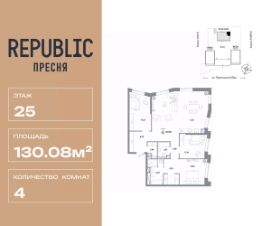 Продается 4комнатная квартира на 25 этаже от застройщика Страна Девелопмент. Площадь квартиры 130,08 кв. м. Стоимость указана без учета акций.