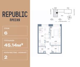 Продается 2комнатная квартира на 6 этаже от застройщика Страна Девелопмент. Площадь квартиры 45,14 кв. м.