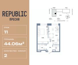 Продается 2комнатная квартира на 11 этаже от застройщика Страна Девелопмент. Площадь квартиры 44,06 кв. м.