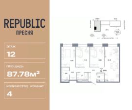 Продается 4комнатная квартира на 12 этаже от застройщика Страна Девелопмент. Площадь квартиры 87,78 кв. м.