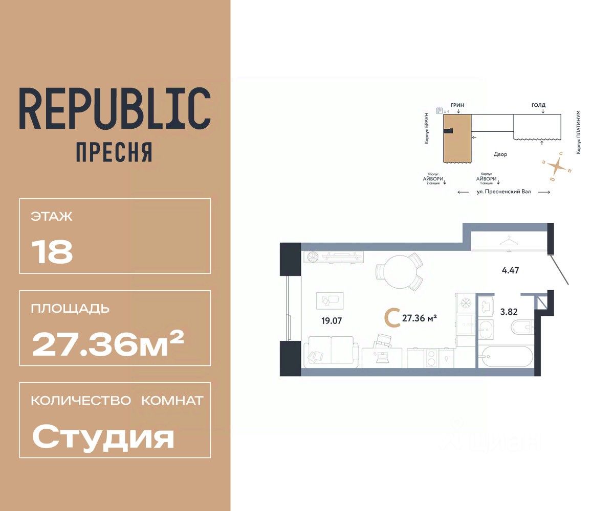 Новая квартира в ЖК "Republic" напрямую от федерального застройщика "Страна Девелопмент".