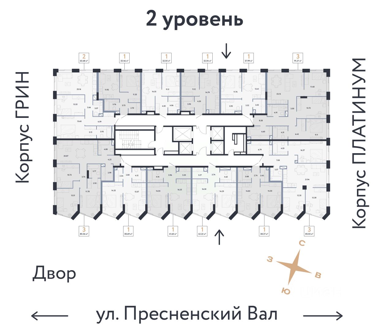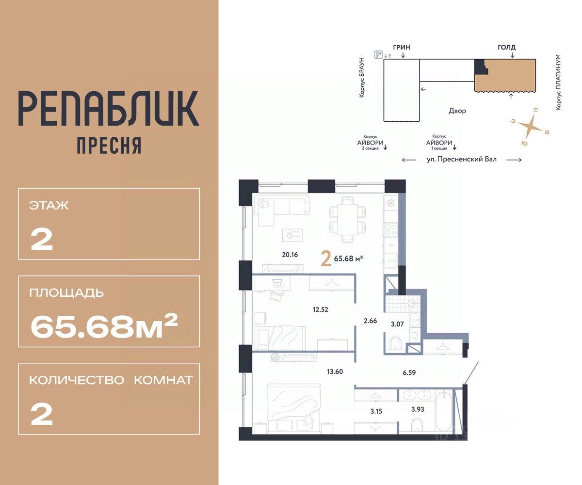 Продается 3комнатная квартира на 2 этаже от застройщика Страна Девелопмент. Площадь квартиры 65.68 кв. м.