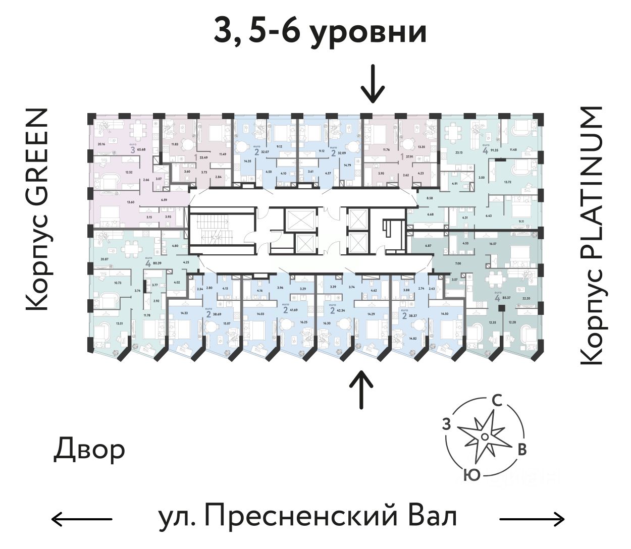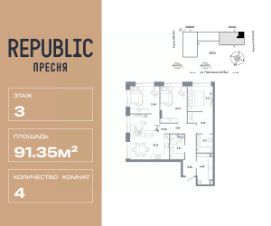 Продается 4комнатная квартира на 3 этаже от застройщика Страна Девелопмент. Площадь квартиры 91,35 кв. м. Стоимость указана без учета акций.