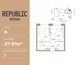 Продается 1комнатная квартира на 6 этаже от застройщика Страна Девелопмент. Площадь квартиры 37,91 кв. м. Стоимость указана без учета акций.