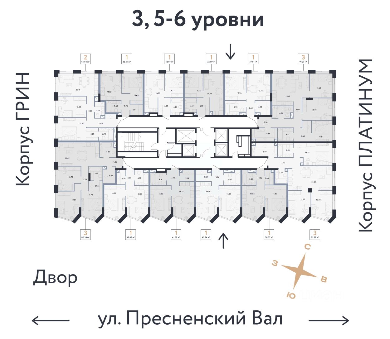 • Панорама на центр. Наслаждайтесь видами ЦАО каждый день: панорама на историческую Пресню и башни Москва-Сити — из своей квартиры или с приватной террасы на крыше.