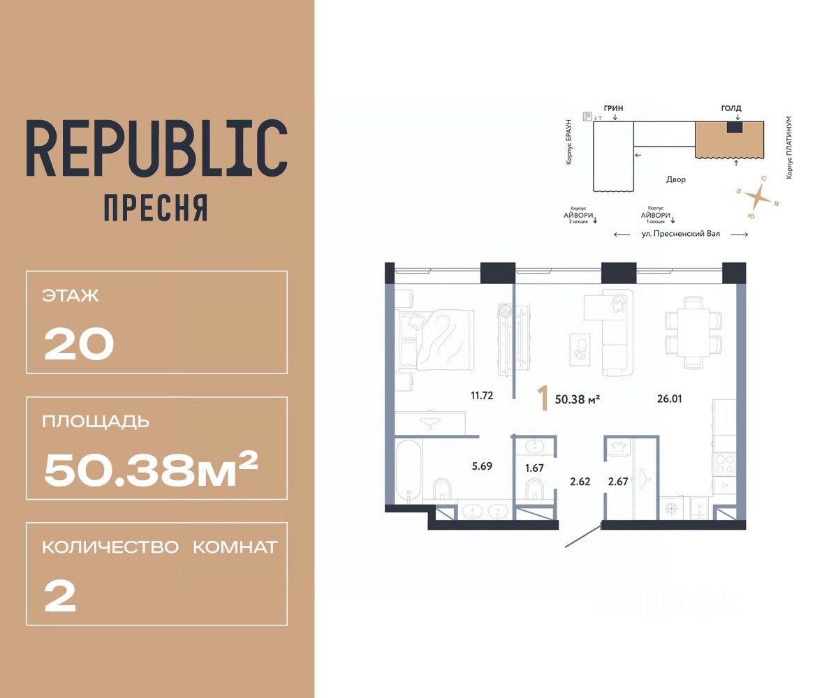 Новая квартира в ЖК "Republic" напрямую от федерального застройщика "Страна Девелопмент".