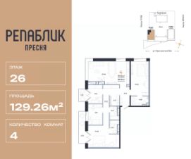Продается 5комнатная квартира на 26 этаже от застройщика Страна Девелопмент. Площадь квартиры 129.26 кв. м.
