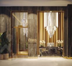 Просторное гранд-лобби с высотой потолка 7м. Дизайн Гранд Лобби выполнен в стиле классических люксовых отелей с использованием премиальных материалов.